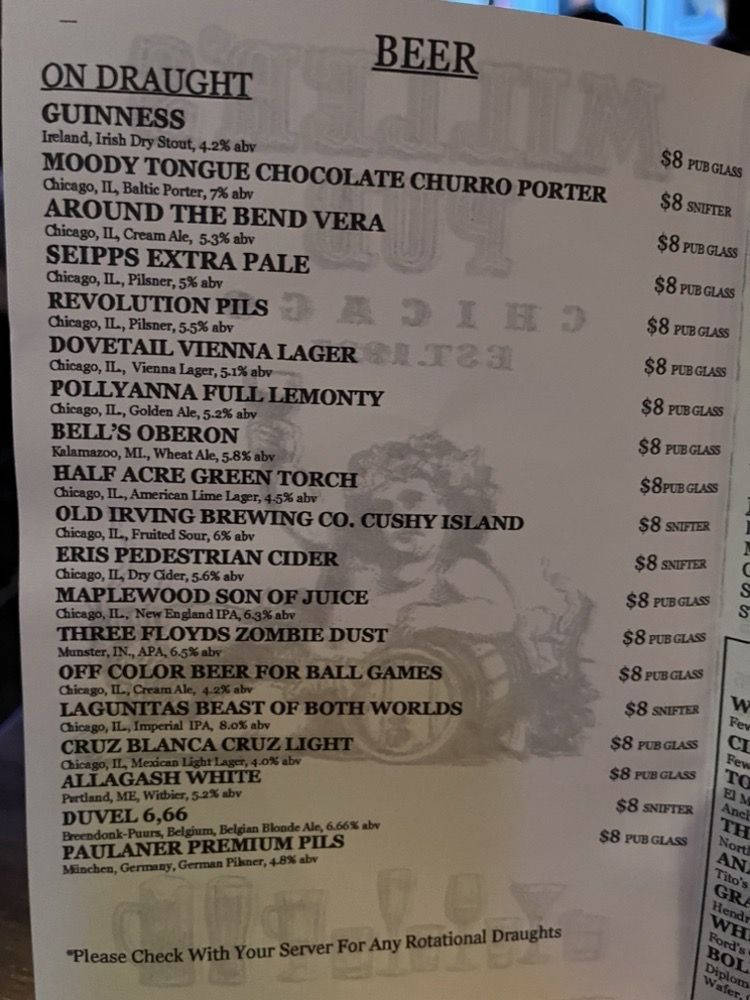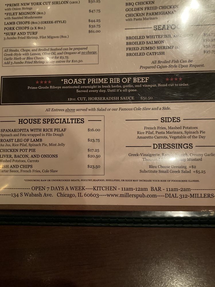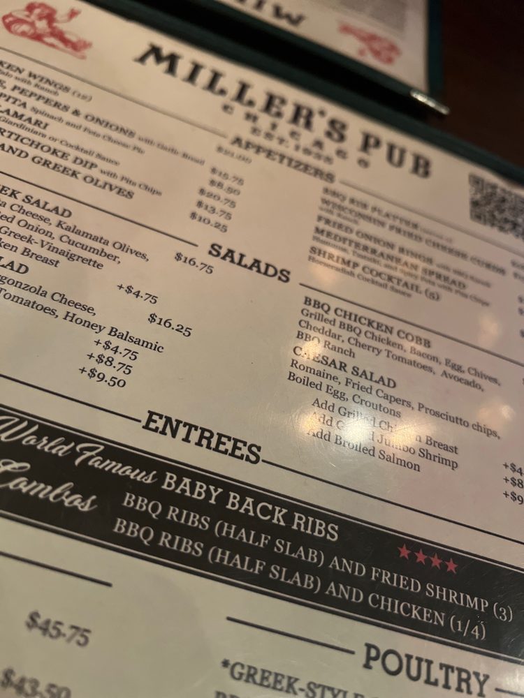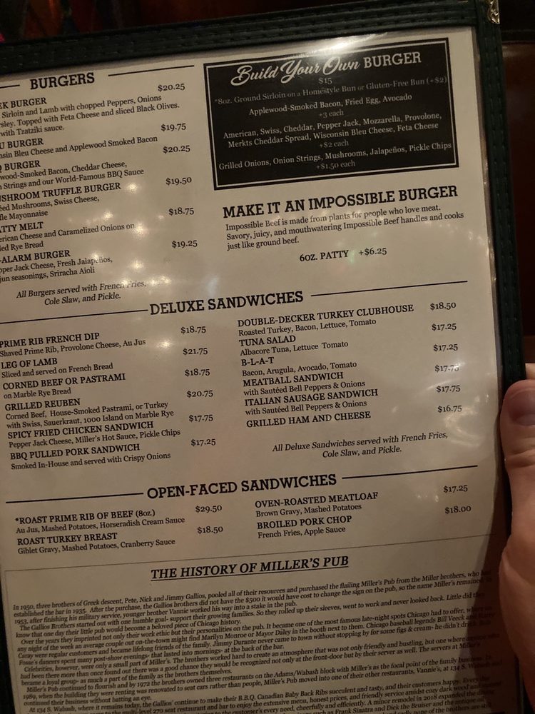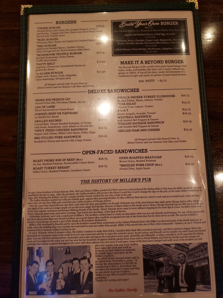 Miller's Pub in Chicago is a quintessential American pub that offers a variety of dishes that cater to different tastes. The appetizers such as the Sausage, Peppers and Onions and the Wisconsin Fried Cheese Curds are flavorful starters that set the tone for a satisfying meal. The Canadian Baby Back Ribs are a standout, with options for different portions and combos. The burger selection is impressive, with options like the Mushroom Truffle Burger and the Reuben Burger showcasing unique flavors. The Mediterranean Spreads and Spanakopita provide a taste of Greek influence in the menu. The reviews from customers praise the generous portions and friendly service at Miller's Pub, making it a must-visit for those craving hearty pub fare in a lively atmosphere.